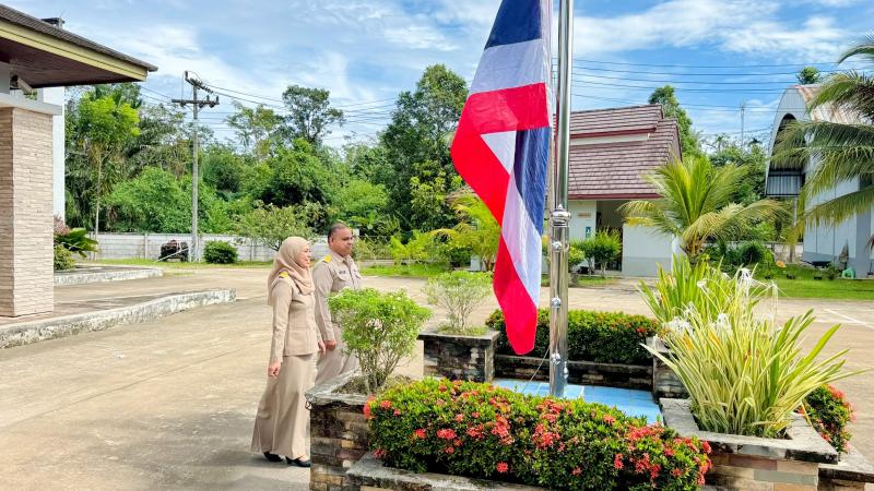 นายอิสมาแอล หะยีเจ๊ะอาแซ นายก อบต.ปูโยะ มอบหมายให้นายรอเซ๊ะ อาแวโซ๊ะ รองนายก อบต.ปูโยะ พร้อมด้วยพนักงานส่วนตำบล พนักงานจ้าง เข้าร่วมกิจกรรมเคารพธงชาติเนื่องในวันพระราชทานธงชาติไทย 28 กันยายน ประจำปี 2568 โดยมีการชักธงชาติและร้องเพลงชาติไทย เพื่อความภาคภูมิใจและน้อมรำลึกถึงพระมหากรุณาธิคุณ พระบาทสมเด็จพระมงกุฎเกล้าเจ้าอยู่หัว ทรงประกาศใช้ธงไตรรงค์เป็นธงชาติรูปแบบปัจจุบัน