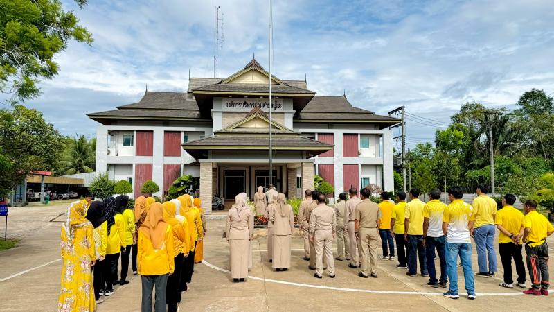 นายอิสมาแอล หะยีเจ๊ะอาแซ นายก อบต.ปูโยะ มอบหมายให้นายรอเซ๊ะ อาแวโซ๊ะ รองนายก อบต.ปูโยะ พร้อมด้วยพนักงานส่วนตำบล พนักงานจ้าง เข้าร่วมกิจกรรมเคารพธงชาติเนื่องในวันพระราชทานธงชาติไทย 28 กันยายน ประจำปี 2568 โดยมีการชักธงชาติและร้องเพลงชาติไทย เพื่อความภาคภูมิใจและน้อมรำลึกถึงพระมหากรุณาธิคุณ พระบาทสมเด็จพระมงกุฎเกล้าเจ้าอยู่หัว ทรงประกาศใช้ธงไตรรงค์เป็นธงชาติรูปแบบปัจจุบัน